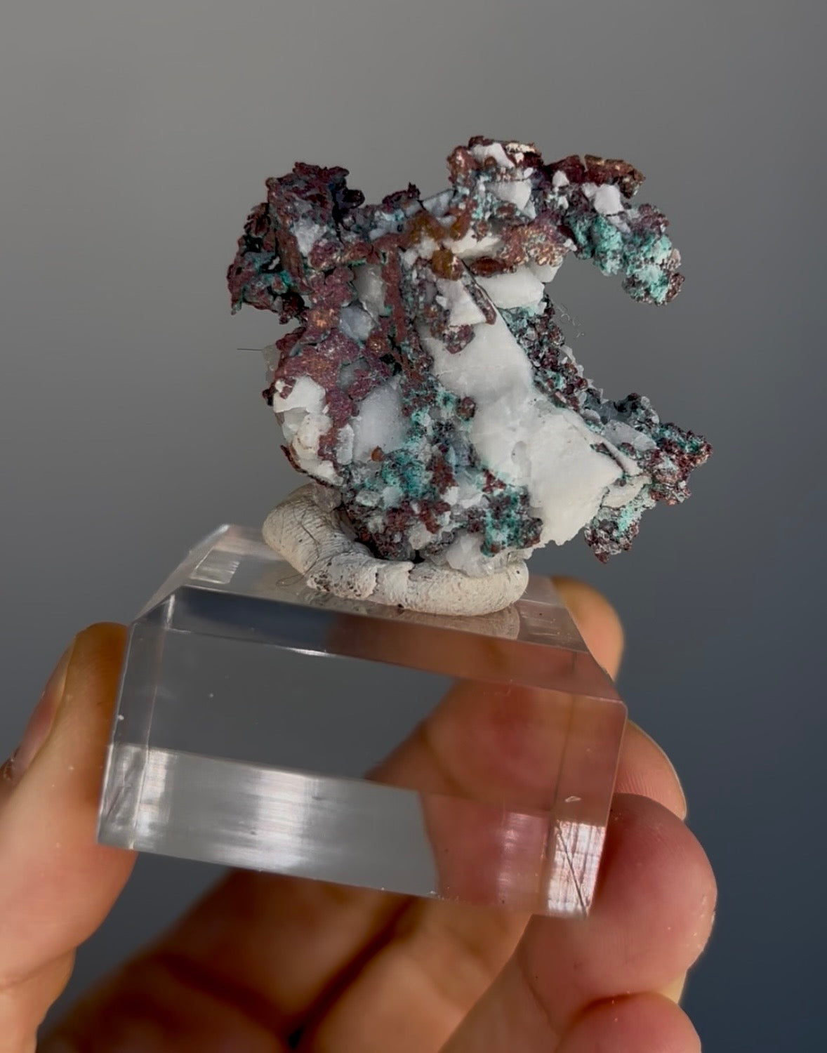 Native Copper with White Calcite and Green Malachite
