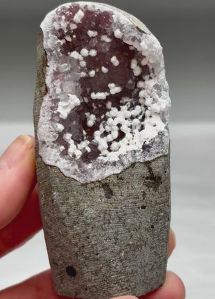 Okenite Snowballs with Red Quartz Geode Origin: Nashik, India Size: 87 x 42 x 31 mm Weight: 143 Grams Read more