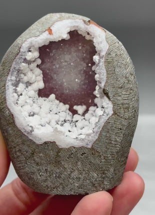 Okenite Snowballs with Red Quartz Geode Origin: Nashik, India Size: 75 x 63 x 47 mm Weight: 225 Grams Read more