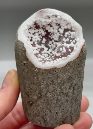 Okenite Snowballs with Red Quartz Geode Origin: Nashik, India Size: 76 x 53 x 47 mm Weight: 215 Grams Read more