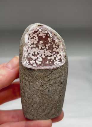 Okenite Snowballs with Red Quartz Geode Origin: Nashik, India Size: 82 x 40 x 36 mm Weight: 180 Grams Read more