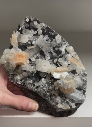 Black Chalcedony with Apophyllite and Stilbite Origin: Nashik, India Size : 170 x 120 x 50 mm Weight : 1054... Read more