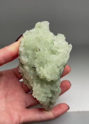 Beautiful Apple Green Prehnite Sparkly Crystals. The prehnite crystals formed in seemingly striated patterns, all bunched up next to each other... Read more