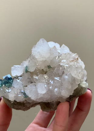 Daylight Fluorescent Blue Green Color Change Cubic Fluorite with Quartz These crystals are daylight fluorescent, meaning they will turn from... Read more