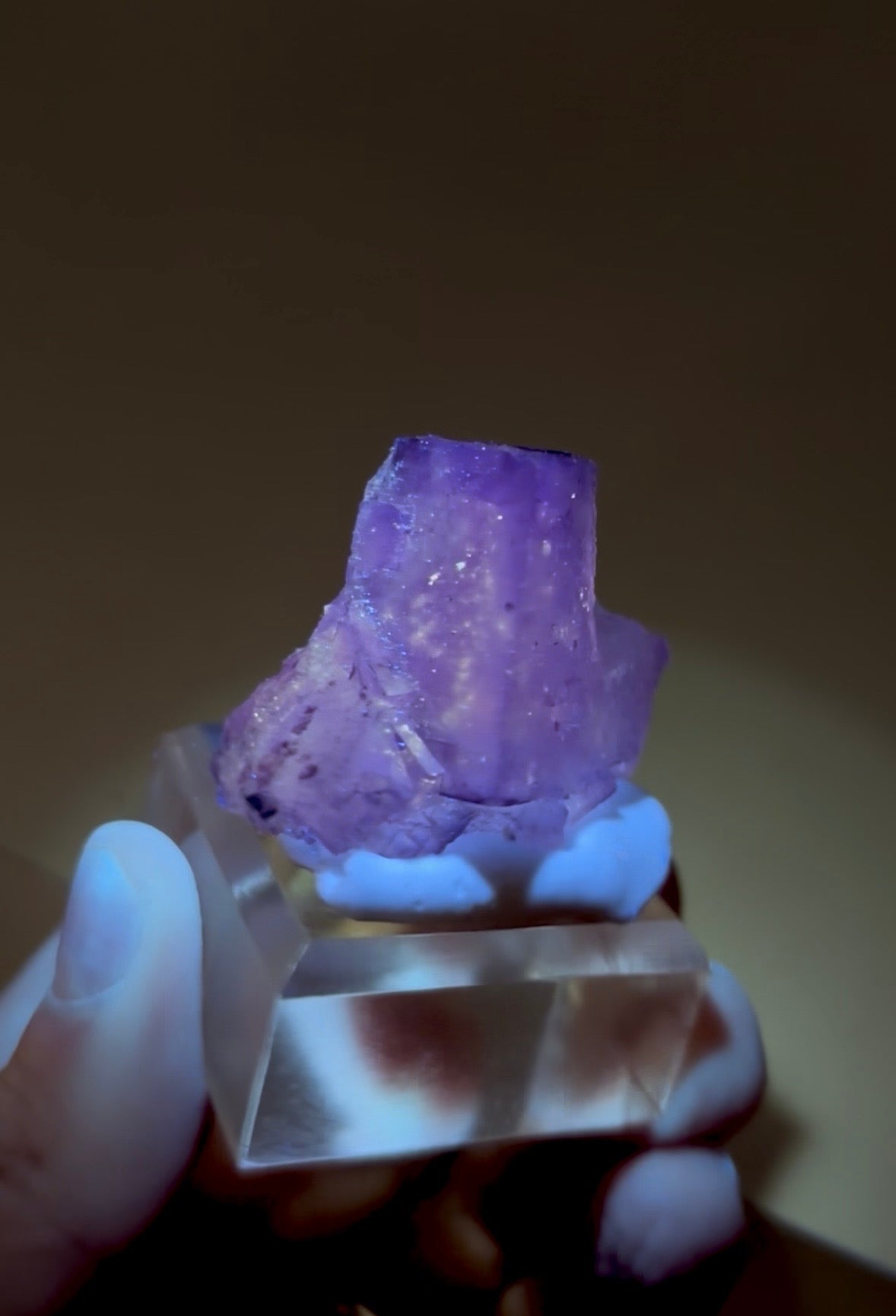Fluorite specimen with petroleum oil inclusions. Unique fluorescence when exposed to ultraviolet (UV) light. Amazing "galaxy-like" glow. This fluorescence is a result... Read more