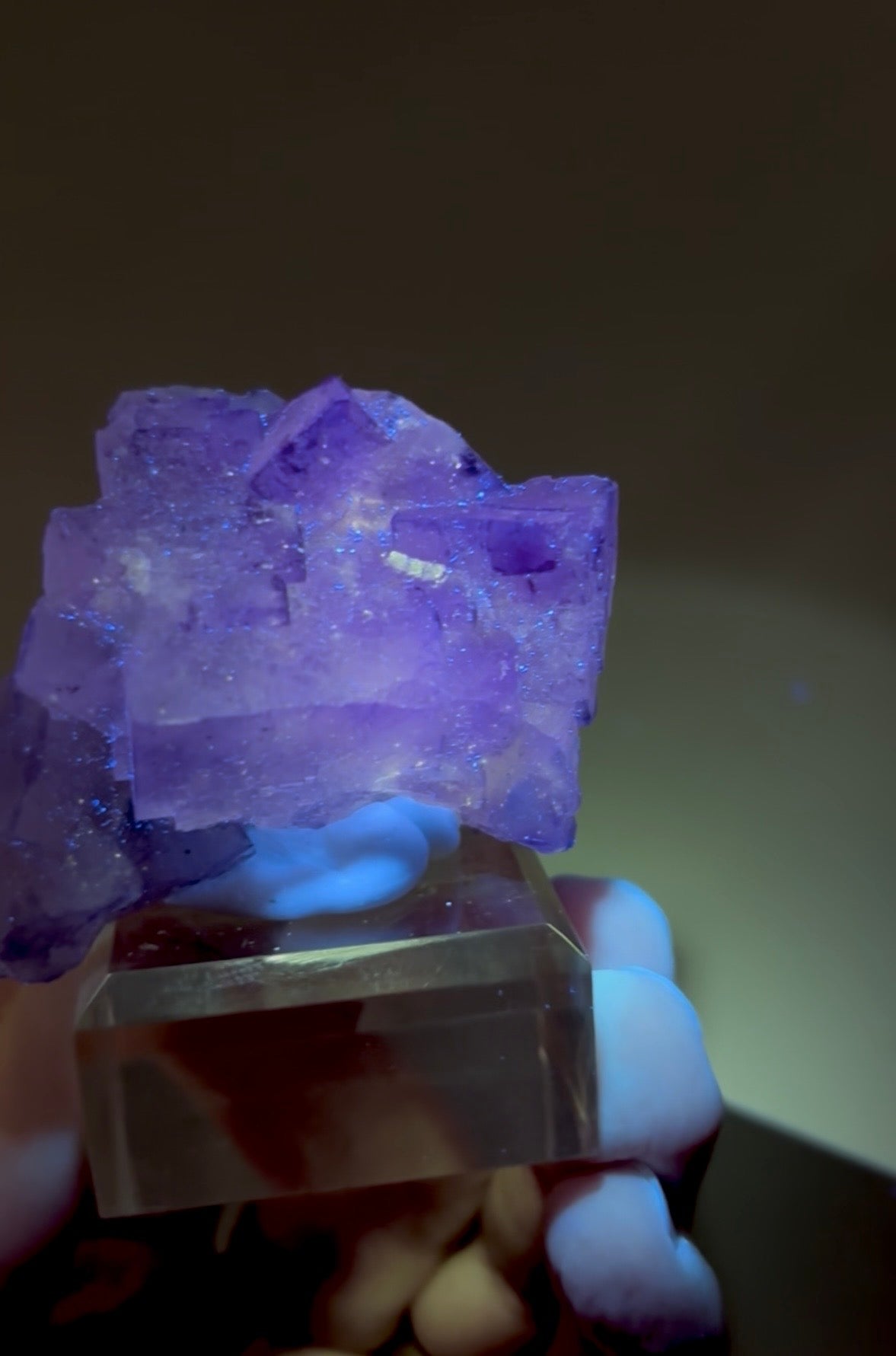 Fluorite specimen with petroleum oil inclusions. Unique fluorescence when exposed to ultraviolet (UV) light. Amazing "galaxy-like" glow. This fluorescence is a result... Read more