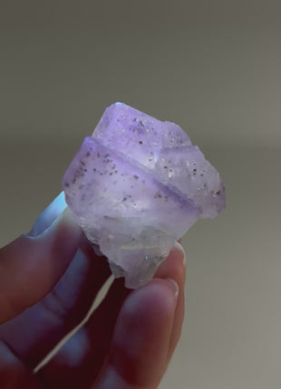 Fluorite specimen with petroleum oil inclusions. Unique fluorescence when exposed to ultraviolet (UV) light. Amazing "galaxy-like" glow. This fluorescence is a result... Read more