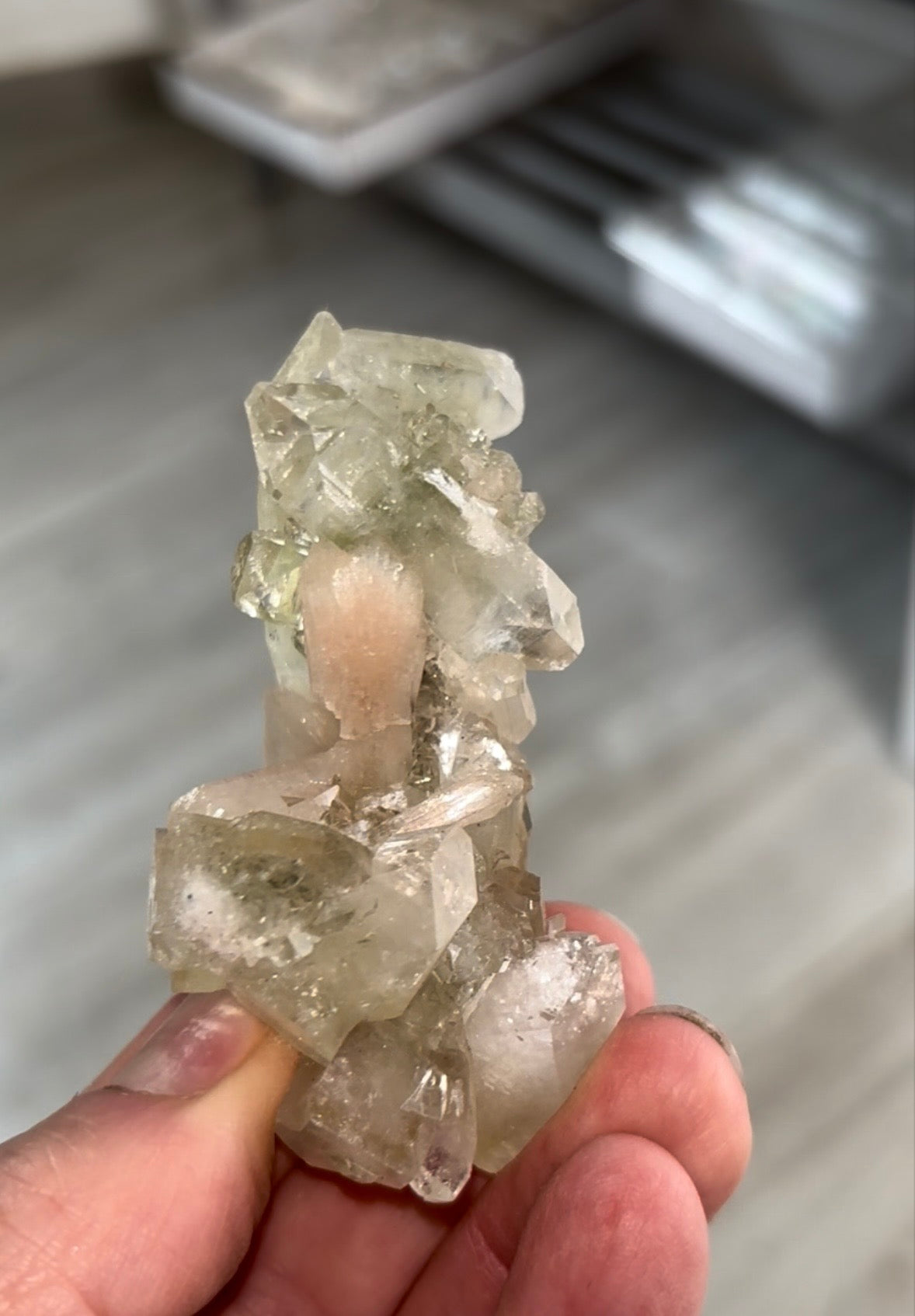 New arrival ! Gemmy Green Apophyllite with Pink Stilbite