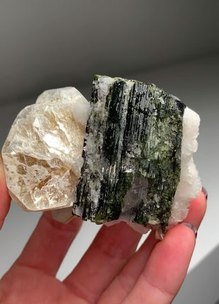 New Arrival ! Greenish Tourmaline with Muscovite Flowers and Snow Albite
