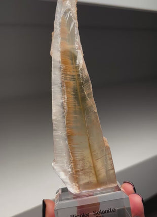 Golden Selenite with an icy layer Origin: Montalban, Spain Size: 157 x 45 x 12 mm Weight: 70 gr Read more