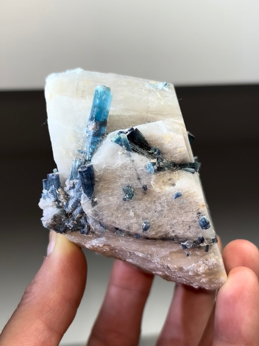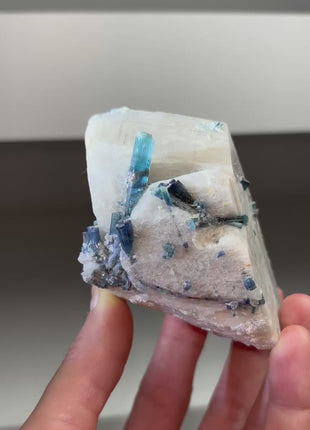 Blue Indicolite Tourmaline on Feldspar Origin: Paprok, Kunar, Afghanistan Size : 89 x 57 x 53 mm Weight: 250... Read more