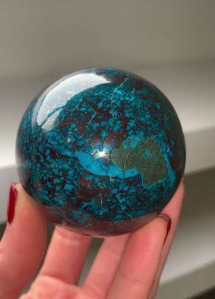 Amazing Combination of Bright Blue Chrysocolla, Red Cuprite and Green Malachite Sphere From: Peru Diameter: 62 mm Weight: 363 Grams... Read more