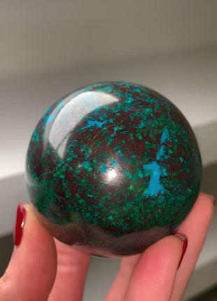 Amazing Combination of Bright Blue Chrysocolla, Red Cuprite and Green Malachite Sphere From: Peru Diameter: 63 mm Weight: 393 Grams... Read more