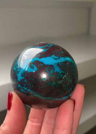 Amazing Combination of Bright Blue Chrysocolla, Red Cuprite and Green Malachite Sphere From: Peru Diameter: 58 mm Weight: 313 Grams... Read more