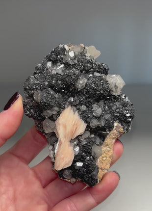 Pink Barite Flower with Cerussite and Sparkling Galena