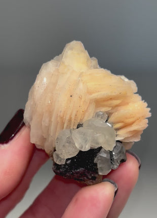 Pink Barite Flowers with Cerussite and Metallic Galena Origin: Mibladen, Haute Moulouya Basin, Midelt, Morocco Size: 53 x 48 x... Read more