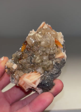Cerussite with Pink Barite Flowers and Galena Origin: Mibladen, Haute Moulouya Basin, Midelt, Morocco Size: 78 x 53 x 41... Read more