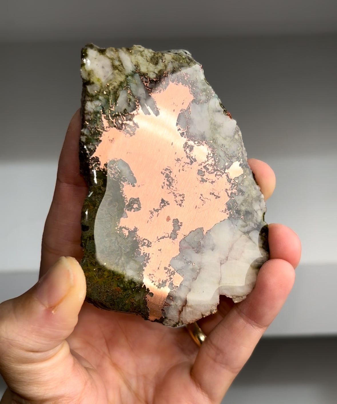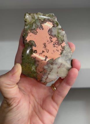 Copper Ore with Green Epidote Slab - From Keweenaw Peninsula, Michigan