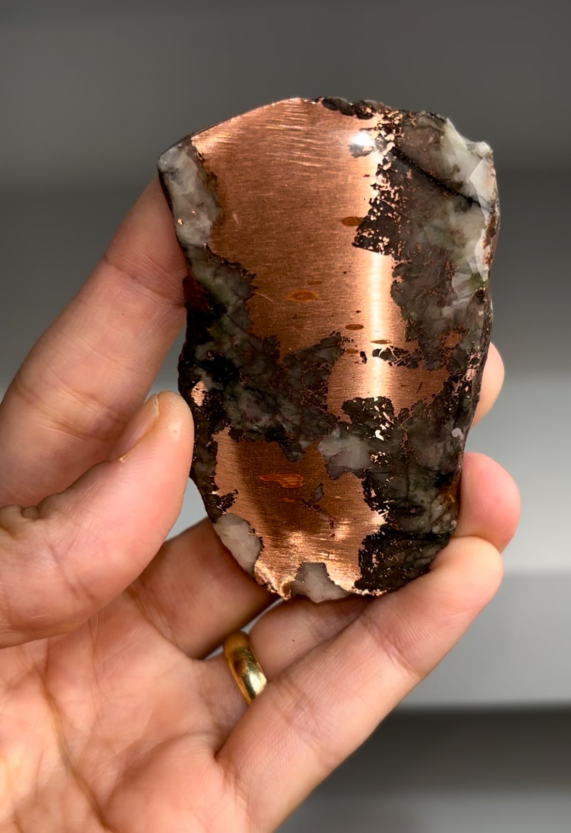 Perfectly polished with mirror-like shine ! From: Keweenaw Peninsula, Michigan USA Size: 76 x 50 x 8 mm Weight: 108... Read more