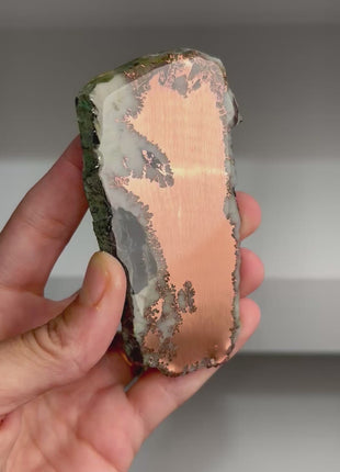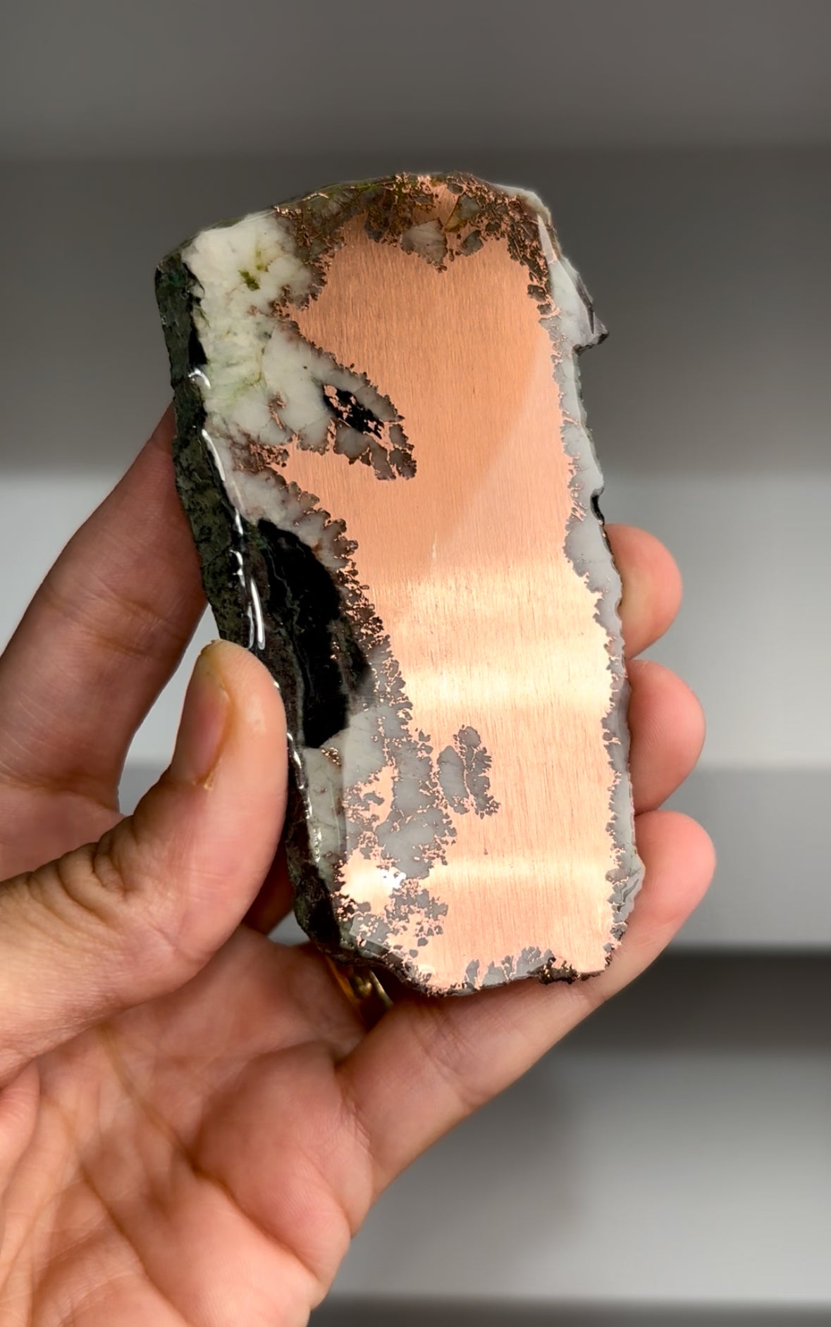 Perfectly polished with mirror-like shine ! From: Keweenaw Peninsula, Michigan USA Size: 100 x 58 x 9 mm Weight: 173... Read more