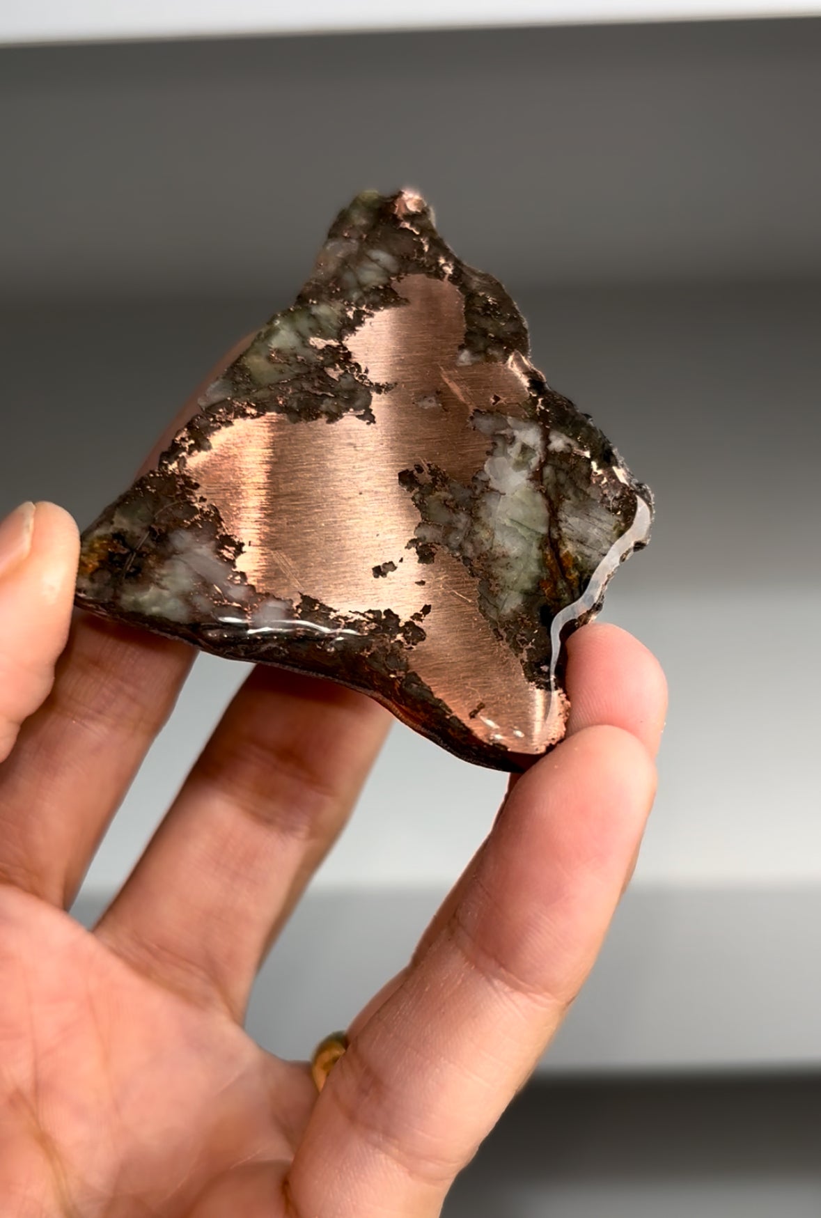 Perfectly polished with mirror-like shine ! From: Keweenaw Peninsula, Michigan USA Size: 64 x 53 x 10 mm Weight: 81... Read more