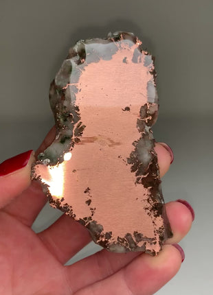 Perfectly polished with mirror-like shine ! From: Keweenaw Peninsula, Michigan USA Size: 90 x 50 x 8 mm Weight:... Read more