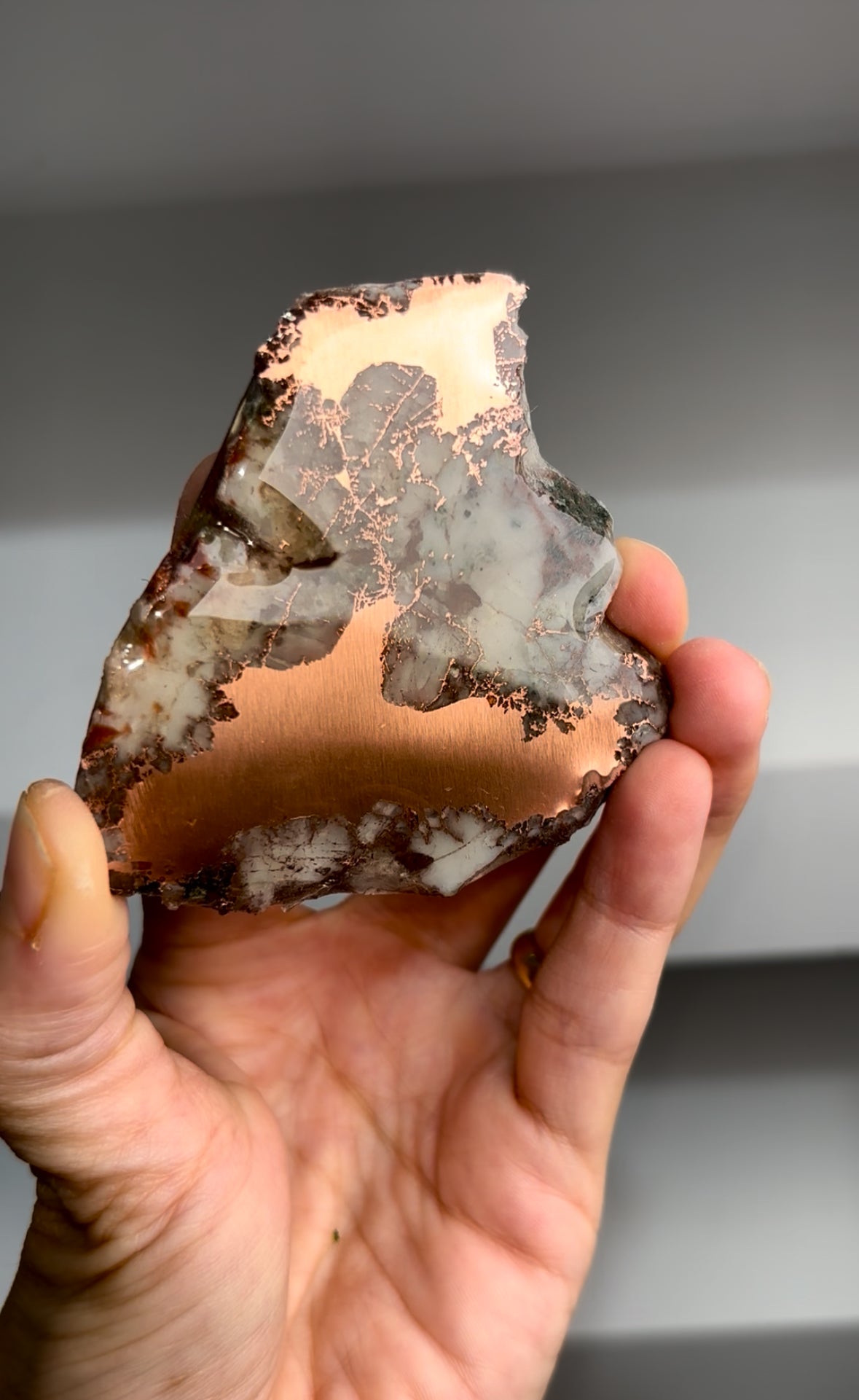 Perfectly polished with mirror-like shine ! From: Keweenaw Peninsula, Michigan USA Size: 83 x 70 x 8 mm Weight: 90... Read more