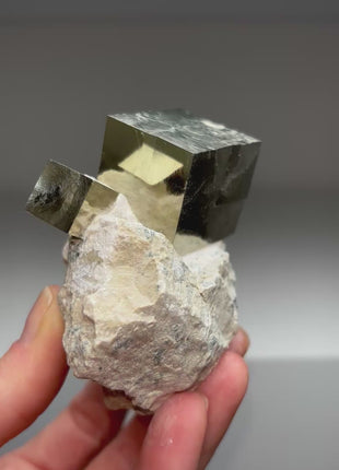 Cubic Pyrite on Matrix From: Navajun, Spain Size: 77 x 74 x 48 mm Weight: 290 Grams Read more