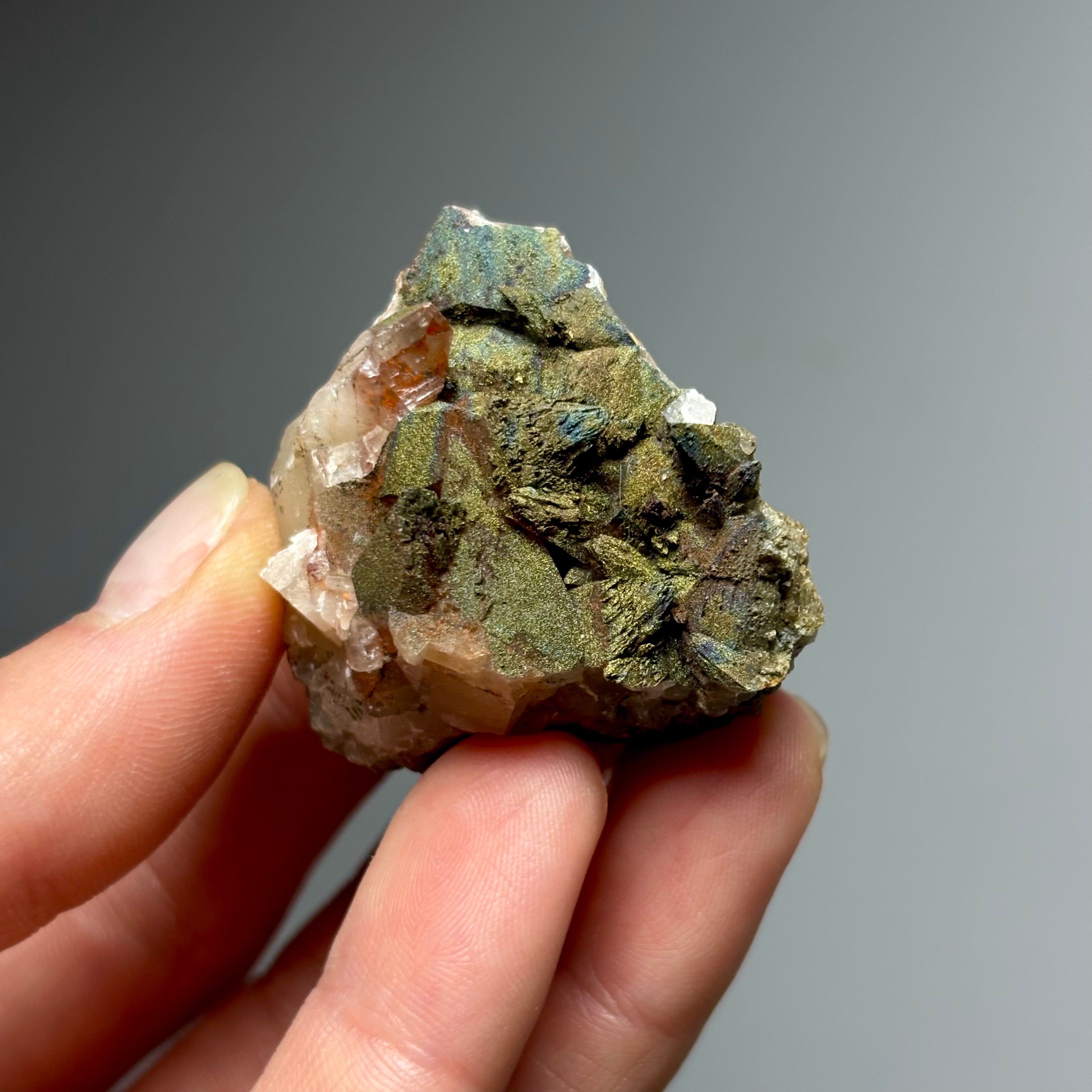 Iridescent Scalenohedral Calcite with Chalcopyrite Amazing glow under UV light Origin: Dniester River, Moldova Size : 41 x 31 x 36... Read more