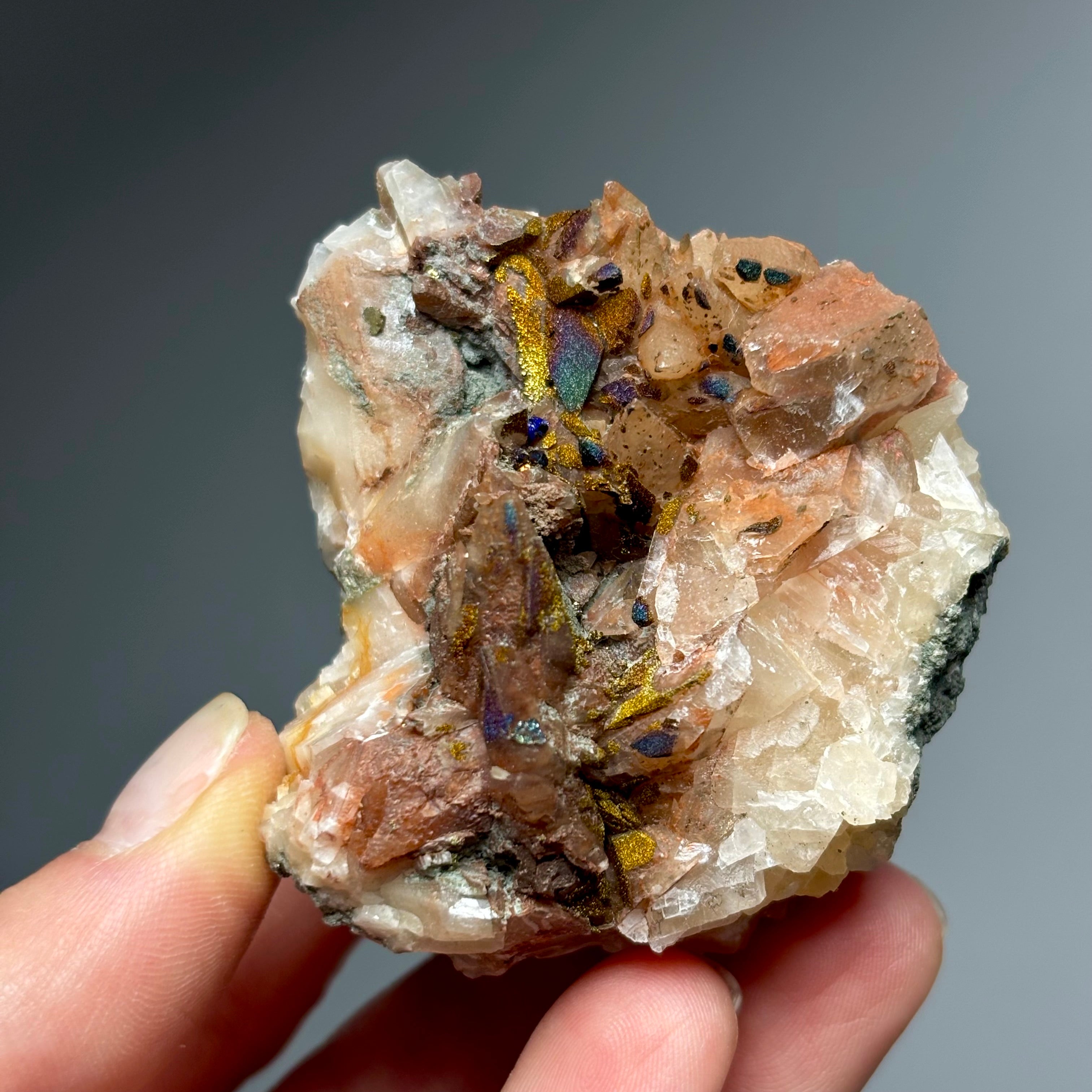 Iridescent Calcite with Chalcopyrite from Moldova