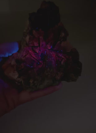 Iridescent Scalenohedral Calcite with Chalcopyrite Amazing glow under short wave UV light Origin: Dniester River, Moldova Size :120 x 98 x... Read more