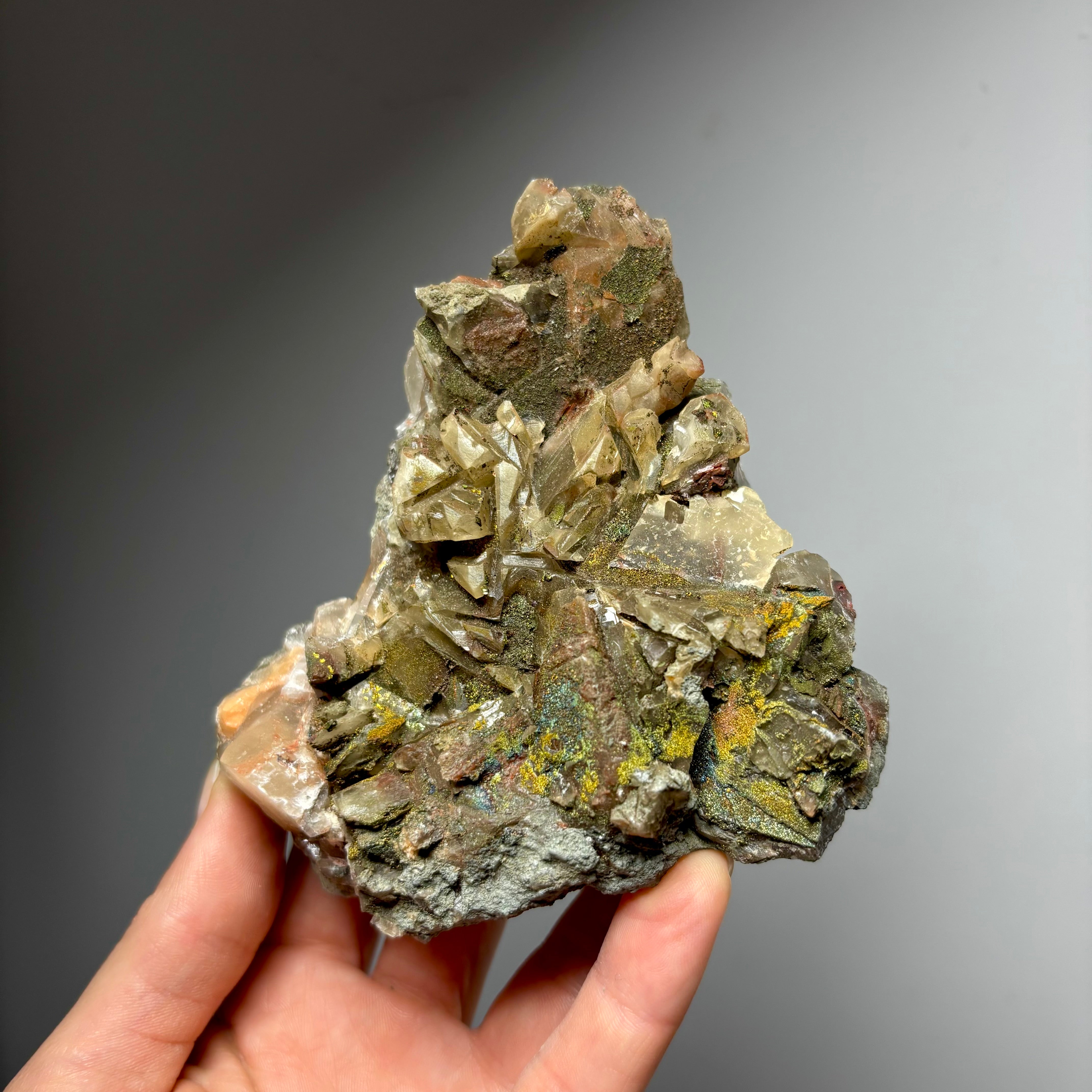 Iridescent Calcite with Chalcopyrite from Moldova