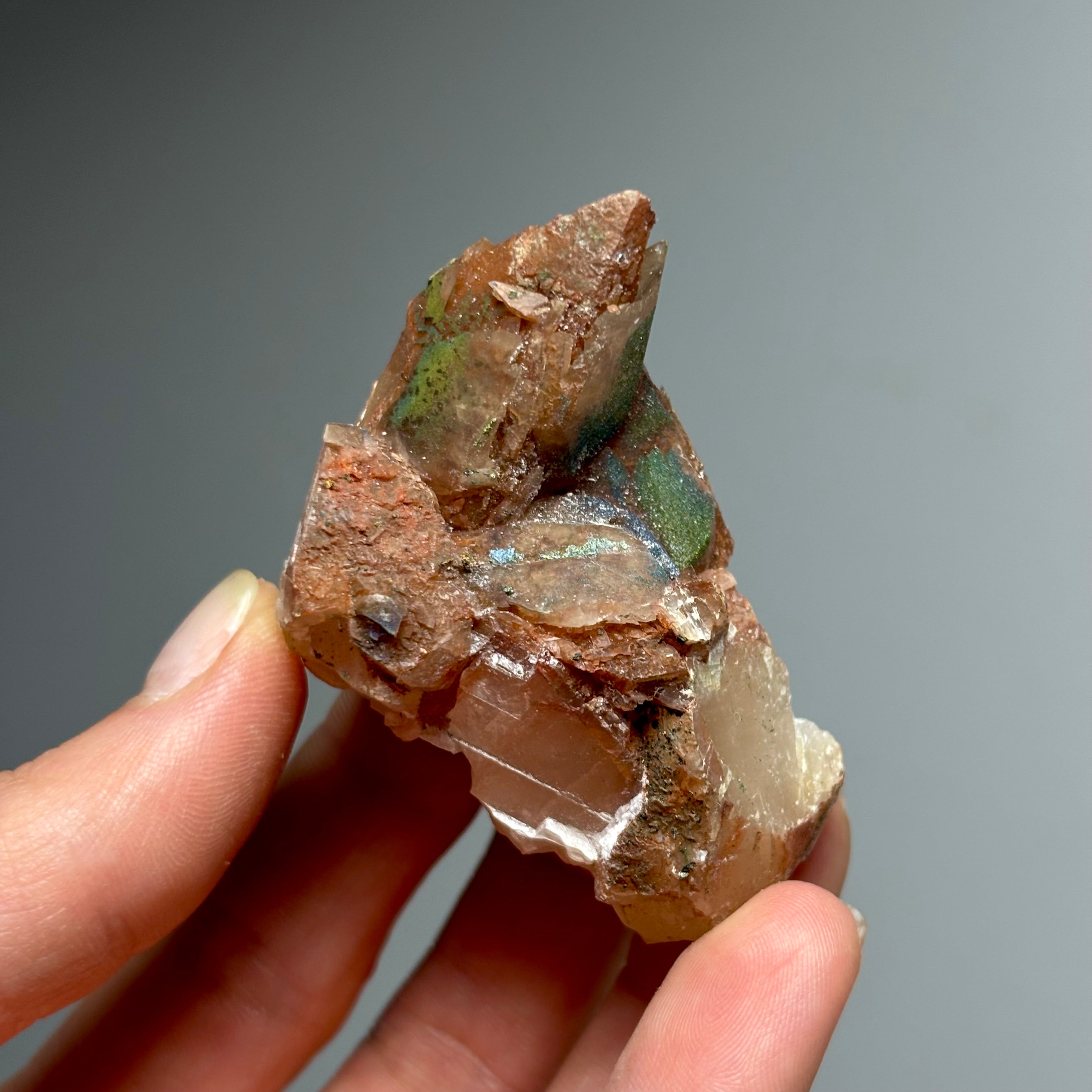 Iridescent Scalenohedral Calcite with Chalcopyrite Amazing glow under UV light Origin: Dniester River, Moldova Size : 59 x 48 x 43... Read more