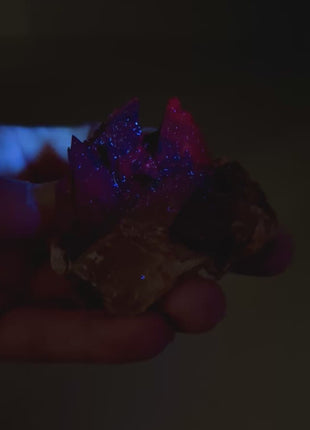 Iridescent Scalenohedral Calcite with Chalcopyrite Amazing glow under UV light Origin: Dniester River, Moldova Size : 56 x 53 x 31... Read more