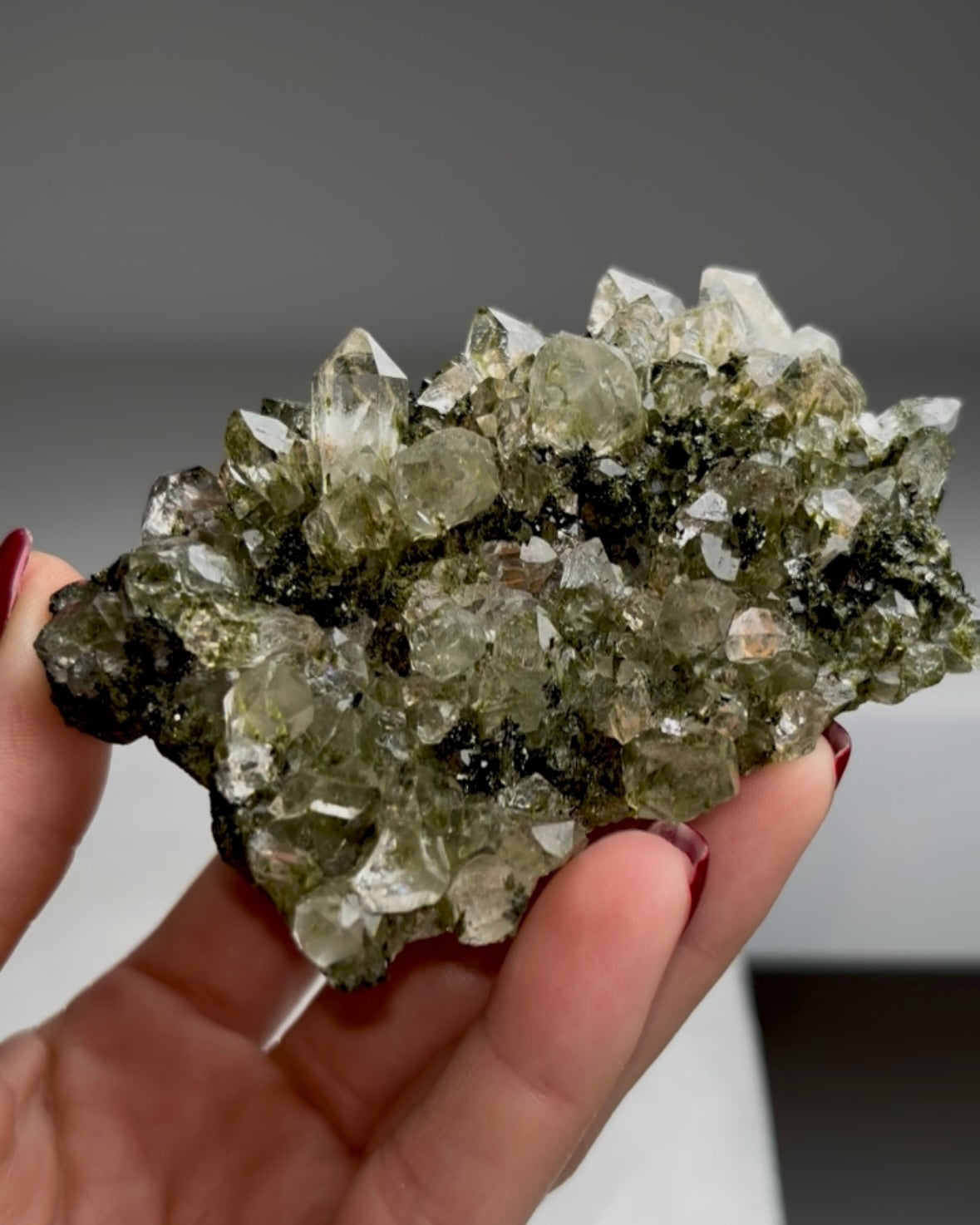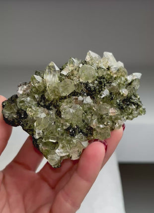 Beautiful Green Epidote with Quartz 🌲 Super sparkly and amazing Size: 98 x 70 x 37 mm Weight: 130 gr  Read more