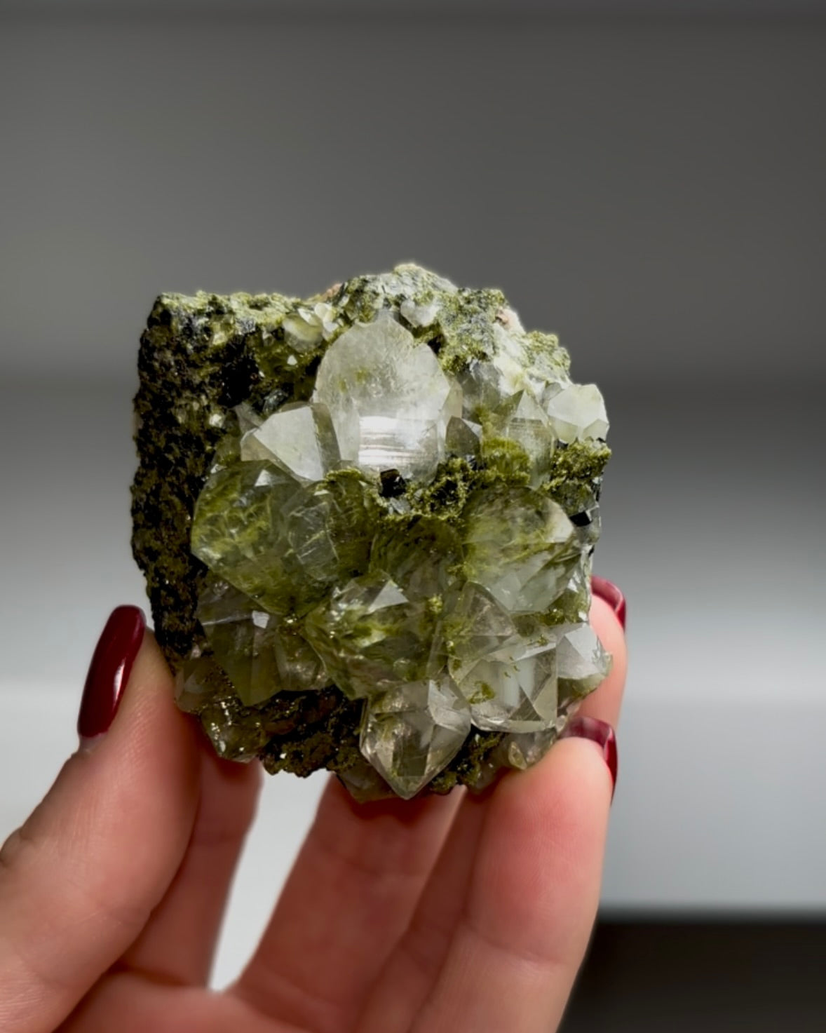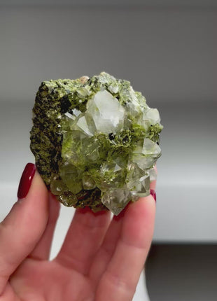 Forest Epidote with Quartz 🌲 Super sparkly and amazing Size: 63 x 56 x 48 mm Weight: 123 gr  Read more