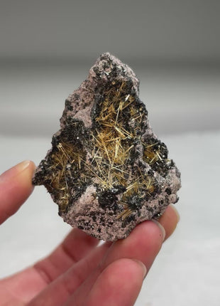 Top Class Golden Rutile with Hematite From: Novo Horizonte, Brazil Size: 69 x 54 x 32 mm Weight: 52 grams Read more