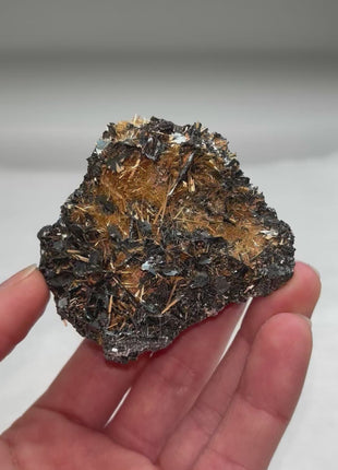 Top Class Golden Rutile with Hematite From: Novo Horizonte, Brazil Size: 68 x 62 x 23 mm Weight: 54 grams Read more