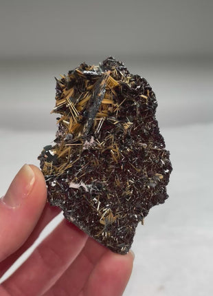 Top Class Golden Rutile with Hematite From: Novo Horizonte, Brazil Size: 75 x 53 x 40 mm Weight: 66 grams Read more