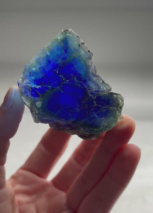 Fluorite from Okorusu, Namibia Beautiful blue color under UV light Size: 68 x 51 x 50 mm Weight: 142 Grams Read more