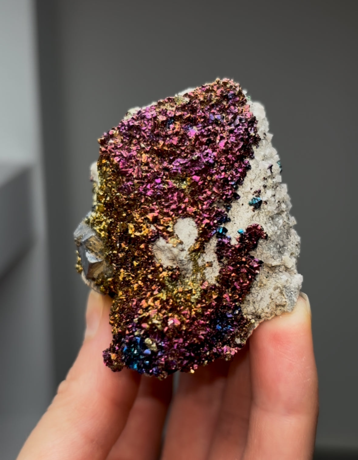 Incredibly Colorful Chalcopyrite from the famous locality Origin: Sweetwater mine, Reynolds Co. Missouri, USA Size: 84 x 53 x 50... Read more