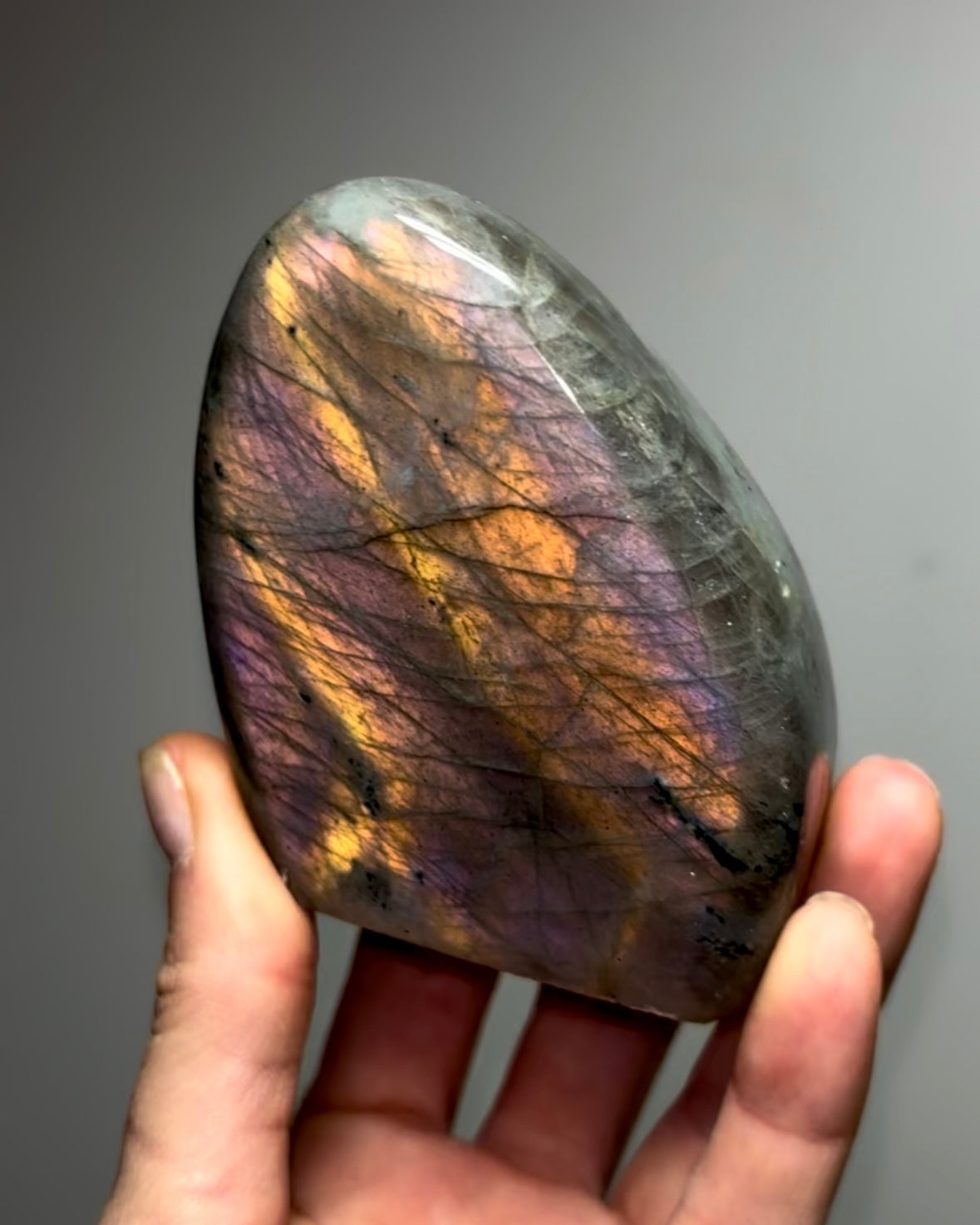 High Grade Flashy Labradorite perfectly polished with shiny, smooth surface Origin: Madagascar Size: 93 x 67 x 41 mm Weight: 319... Read more