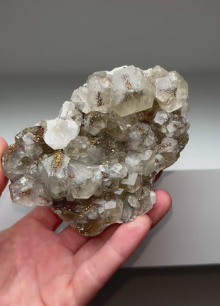 Sparkly Chalcopyrite with Calcite Origin : Daye, Hubei, China Size: 112 x 75 x 47 mm Weight: 385 gr Read more