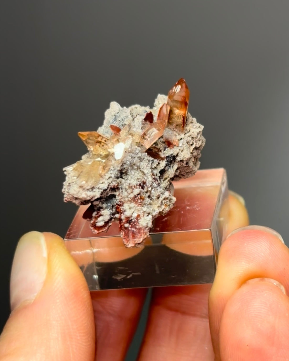 Lustrous Reddish Orange Topaz with Sharp Terminations From: Mina Veronica, El Copetillo, Villa García Mun., Zacatecas, Mexico Size: 33 x 27 x... Read more