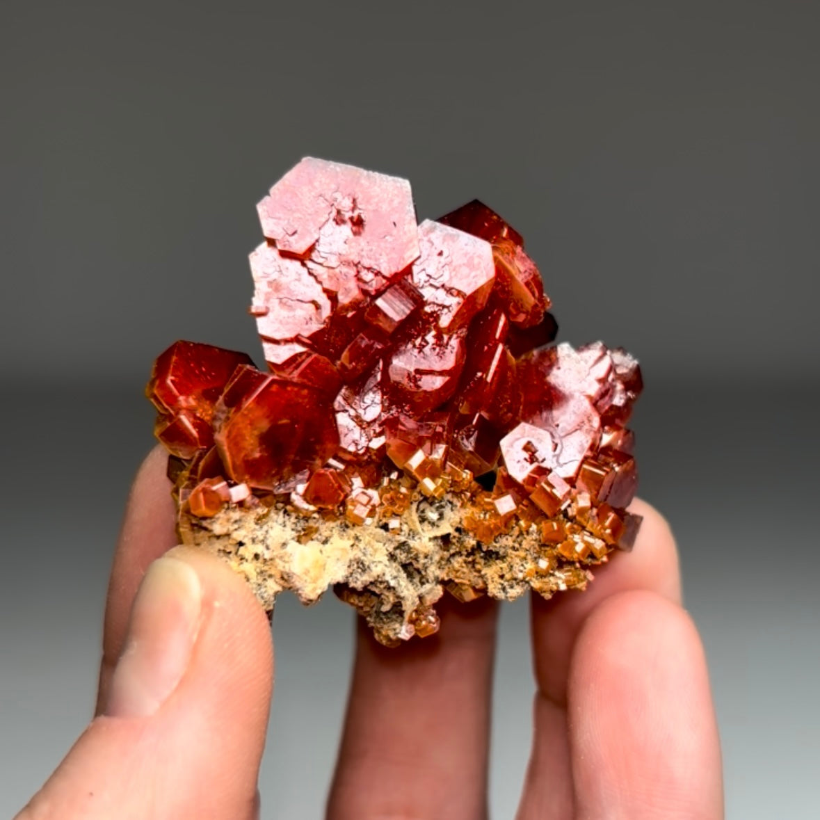 Very High Grade Red Vanadinite with Lustrous, Big Crystals Origin: Midelt, Morocco Size: 50 x 47 x 30 mm Weight: 76 gr Read more