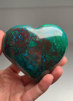 High Grade and Amazing Combination of Blue Chrysocolla, Red Brown Cuprite and Green Malachite Heart From: Peru Size: 83 x 76... Read more