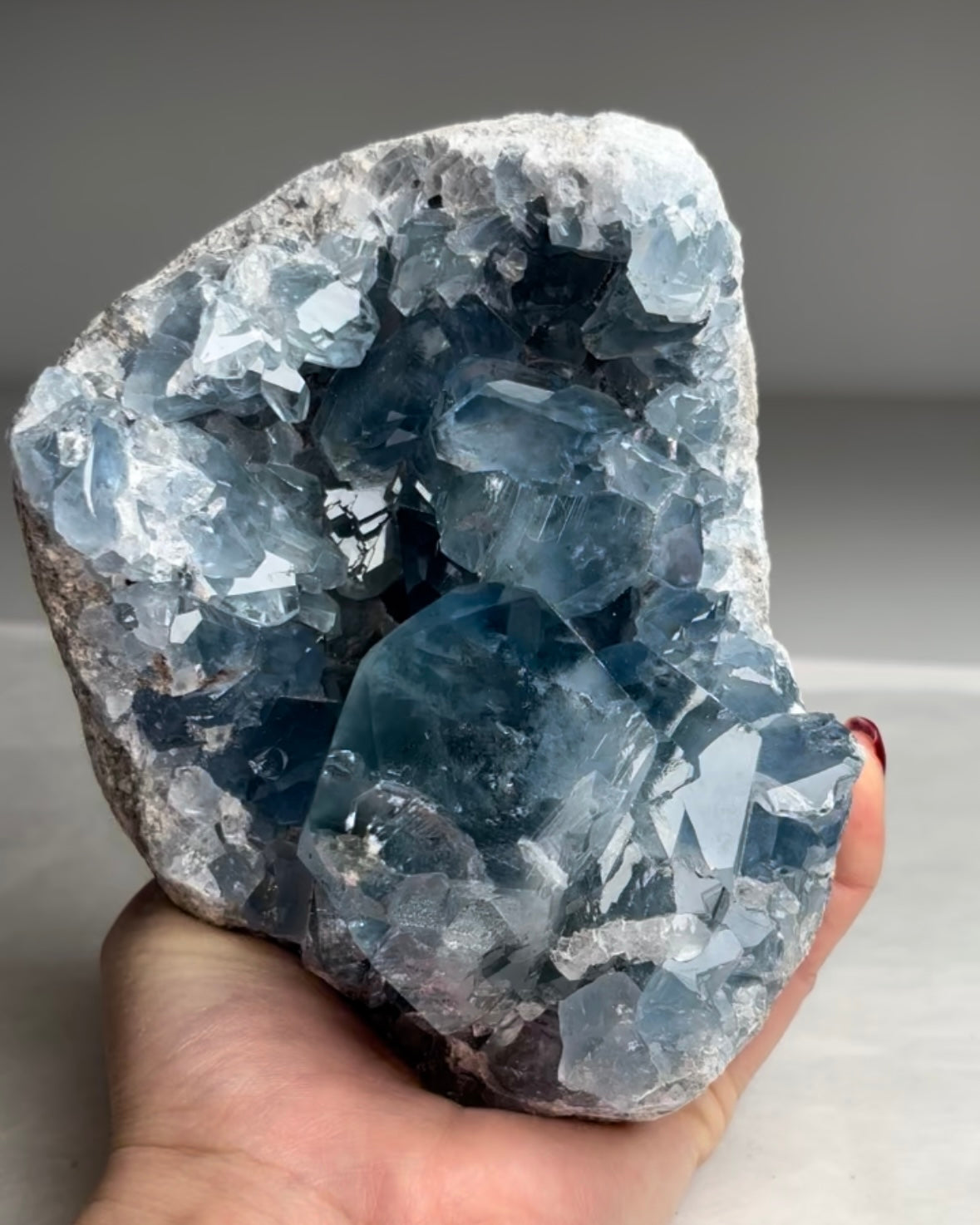 Sky Blue Celestite with Big Crystals From: Sankoany, Ketsepy Mahajanga, Madagascar Size: 155 x 125 x 85 mm Weight: 2000 Grams Read more