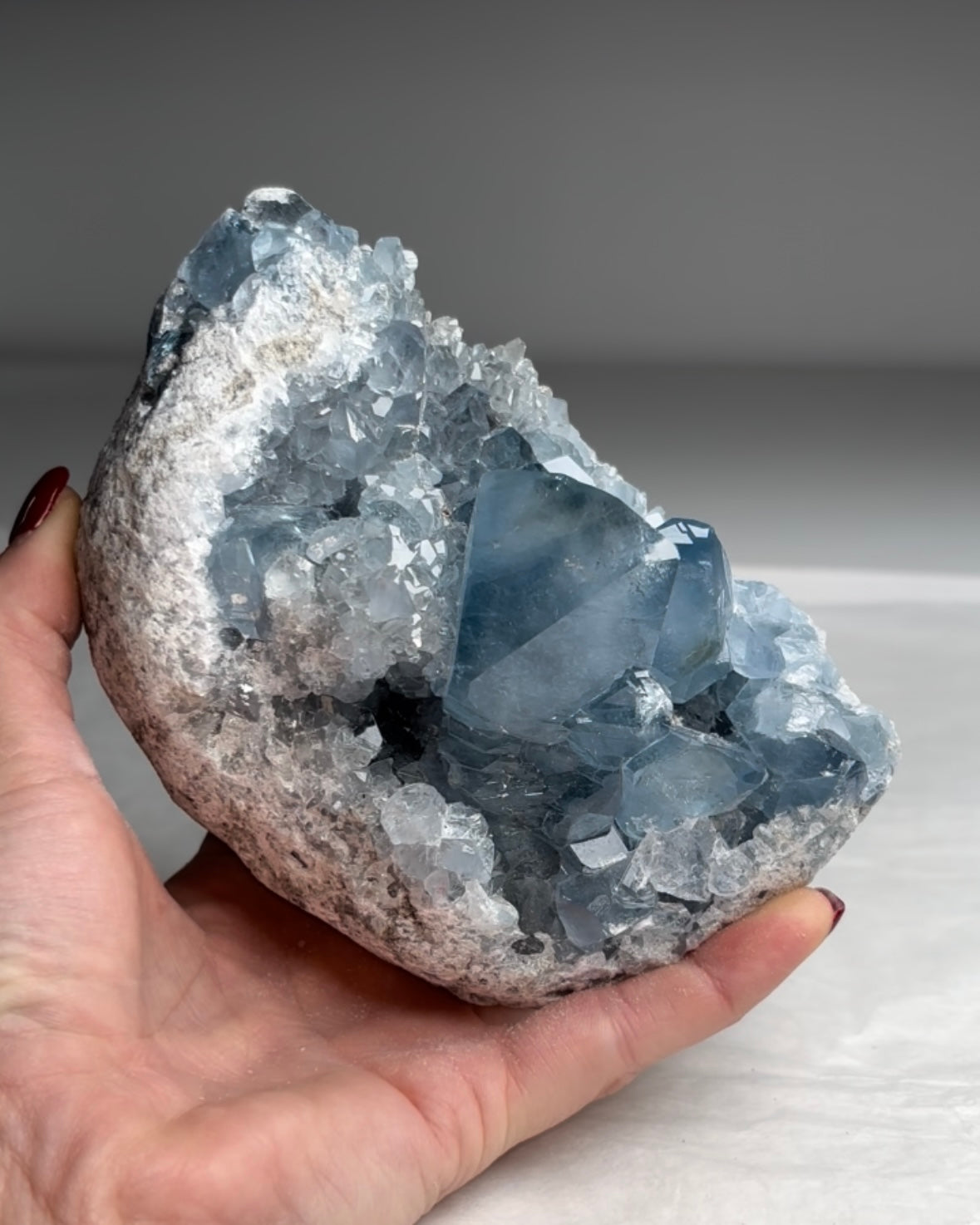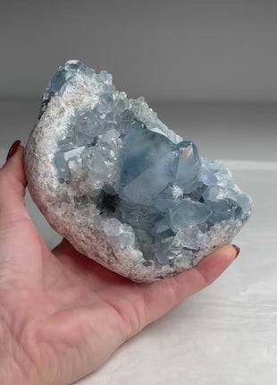 Sky Blue Celestite with Beautiful Crystals From: Sankoany, Ketsepy Mahajanga, Madagascar Size: 145 x 96 x 90 mm Weight: 1711 Grams Read more