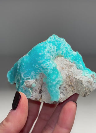 Beautiful Druzy Blue Hemimorphite Origin: M’ Fouadi, Bouenza Department, Congo Size: 100 x 54 x 48 mm Weight: 212 gr Read more