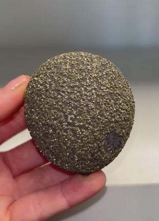 Sparkling, sharp, metallic Pyrite crystals with concentric "rings" on a "sphere" of shale. Completely natural from Earth. Origin: Dongchuan District, Kunming Prefecture,... Read more